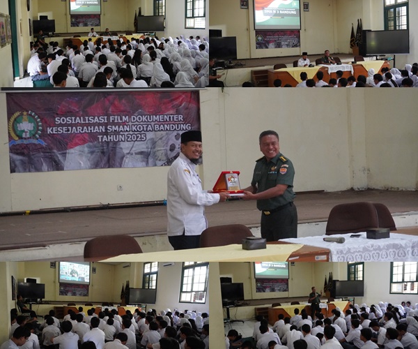Read MoreBandung, 12 November 2025 – Dinas Sejarah Angkatan Darat (Disjarahad) melaksanakan kegiatan Sosialisasi Film Dokumenter Kesejarahan yang bertempat di Aula SMAN 3 Kota Bandung. Acara berlangsung mulai pukul 10.00 hingga 11.30 WIB.Kegiatan ini diikuti oleh seluruh Siswa Kelas X SMAN 3 Bandung, dengan susunan acara sebagai berikut:1. Pembukaan2. Sambutan Kepala Sekolah SMAN 3 Bandung, diwakili...